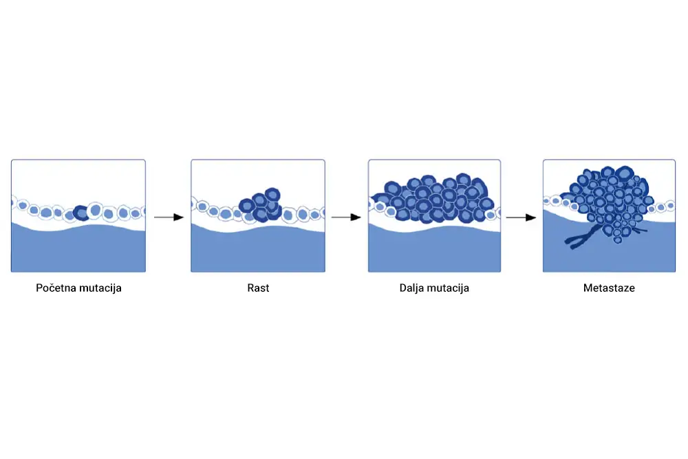 Tumori nastaju kao posljedica mutacije gena koji kontroliraju rast stanica. Mutacija gena primarno nastaje u SAMO JEDNOJ STANICI. Mutacije se obično događaju nasumično i tipično ih ispravljaju stanični sustavi popravka DNK. Međutim, izloženost karcinogenima (kemikalije, duhanski dim, UV zračenja, …) povećava broj mutacija. Neispravno popravljena mutacija može rezultirati promijenjenom funkcijom proteina, što dovodi do disfunkcije staničnih procesa i mogućeg početka tumora. Spontano dobivene mutacije nazivamo somatskim mutacijama. Genetske promjene u početku dovode do gubitka kontrole rasta, proliferacije staničnih klonova sa smanjenom stopom smrtnosti i konačno do distribucije tumorskih stanica u udaljene organe (metastaze). Somatske mutacije koje tumori stječu tijekom bolesti individualne su i razlikuju se ne samo između različitih entiteta tumora već i od pacijenta do pacijenta – svaki je tumor jedinstven. Dakle, tumor je multifaktorska i heterogena genetska bolest.